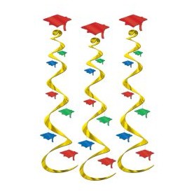 Elevate your graduation celebration with our Whirl Decorations - Grad Cap. These stunning decorations feature vibrant swirling designs adorned with colorful grad caps, making them the perfect addition to any graduation party.