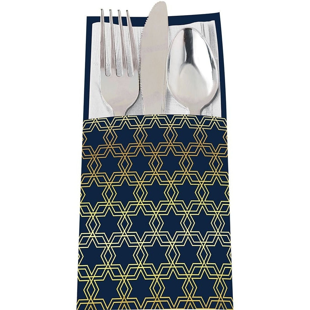 Make your Hanukkah gatherings even more special with our Hanukkah Paper Cutlery Holders. Not only do they keep your utensils tidy, but they also add a decorative touch that will impress your guests. Celebrate the festival of lights with style and functionality!