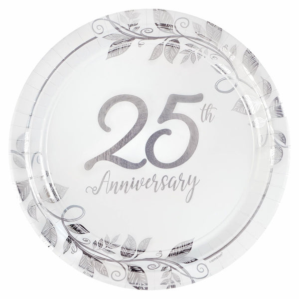 Celebrate your special milestone with our Happy 25th Anniversary 7" Round Metallic Plates. These elegant plates are designed to elevate your silver anniversary celebration, combining style with durability. Each package includes 8 stunning plates, crafted from premium foil board that offers both sophistication and strength.