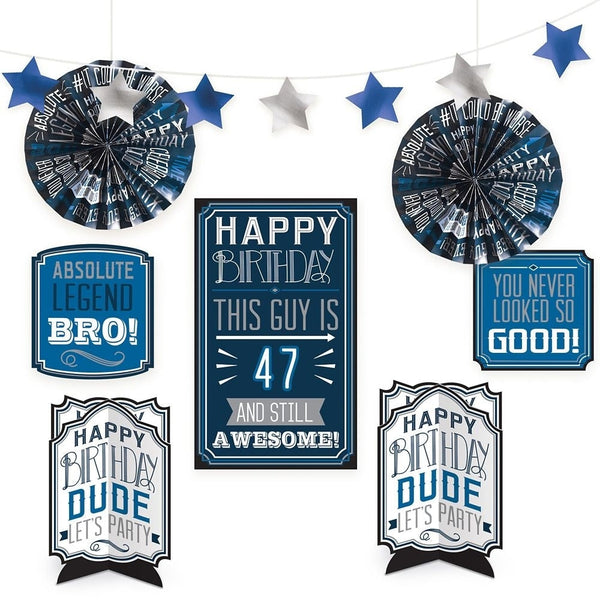 Transform your birthday celebration with the Happy Birthday Man Add-an-age Room Decoration Kit. This all-in-one decoration set is perfect for creating an unforgettable atmosphere for the special man in your life.