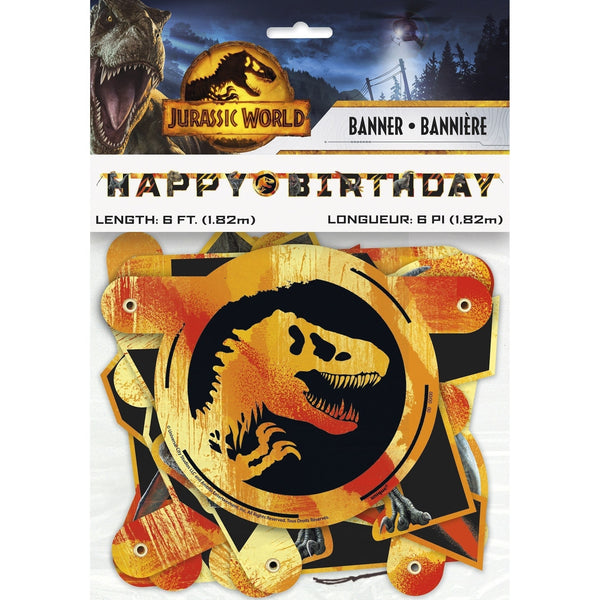 Transform your party space with our Banner Kit - Jointed, Gold and Red, Jurassic World 3, 6'. This stunning banner is perfect for any Jurassic World fan, featuring vibrant gold and red colors that will make your decorations stand out. Measuring an impressive 6 feet, it is the ideal size to create an eye-catching backdrop for your celebrations.