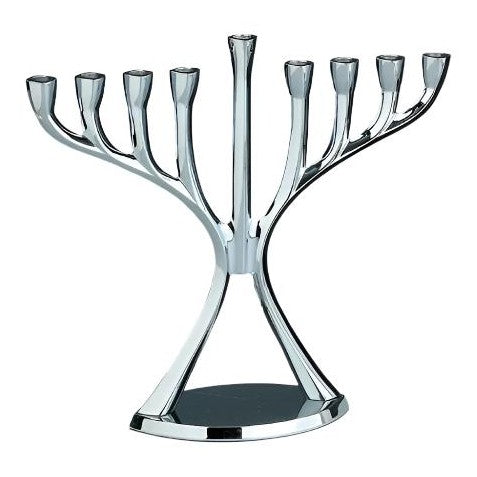 Make your Hanukkah celebrations even more special with our Menorah, Modern, Aluminum, Chrome Finish, 9" x 9". Order yours today and experience the perfect blend of tradition and modern elegance!