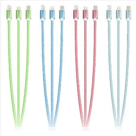 Introducing the Triple USB Glowing Charging Cable, your ultimate charging companion for seamless device power-ups. This innovative cable features: