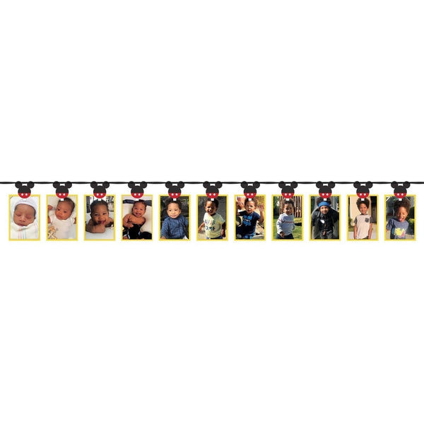 Transform your space into a magical realm with the Mickey Mouse Photo Garland. This delightful decor piece is perfect for adding a whimsical touch to any celebration or everyday environment. Measuring an impressive 12 feet long, this garland provides ample space for you to showcase your favorite memories while incorporating the beloved Mickey Mouse theme that fans adore.