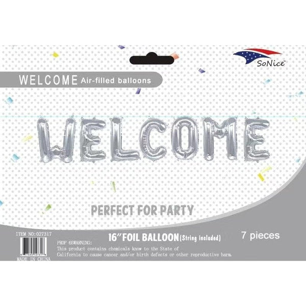 Enhance your event decor with the Mini Foil Balloon Banner Kit - Welcome, Silver. This stunning balloon banner adds a touch of elegance to any celebration, whether it’s a birthday, baby shower, or welcoming gathering.