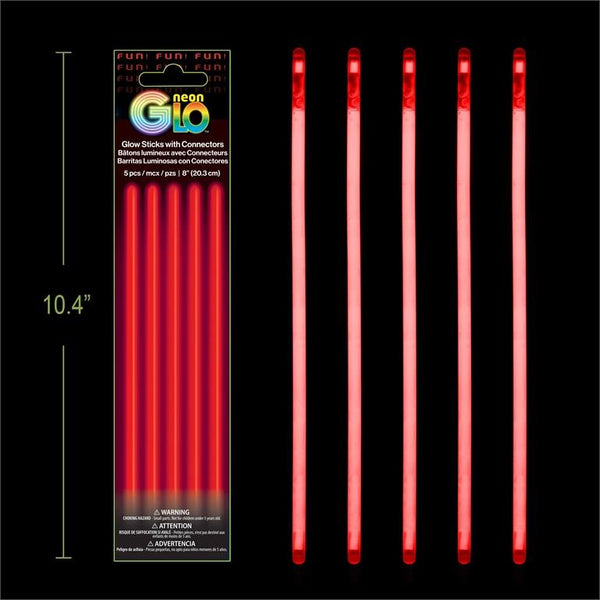 Neon Glo 8" Glow Sticks with Connectors - Red 5 Pack