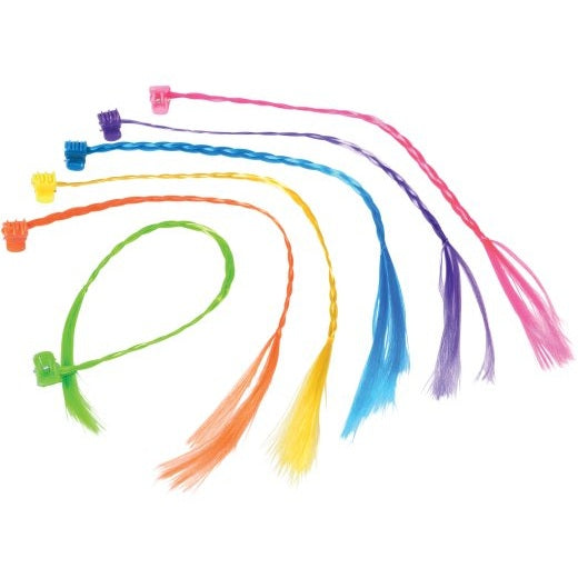 - Set Includes: 12 assorted nylon hair pieces in a variety of bold colors.