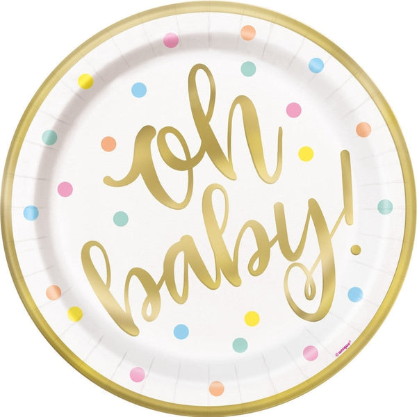 Make your baby shower unforgettable with the perfect blend of style and functionality. Order your set of Oh Baby Gold Baby Shower Round 9" Dinner Plates, 8 Count - Foil Board today!