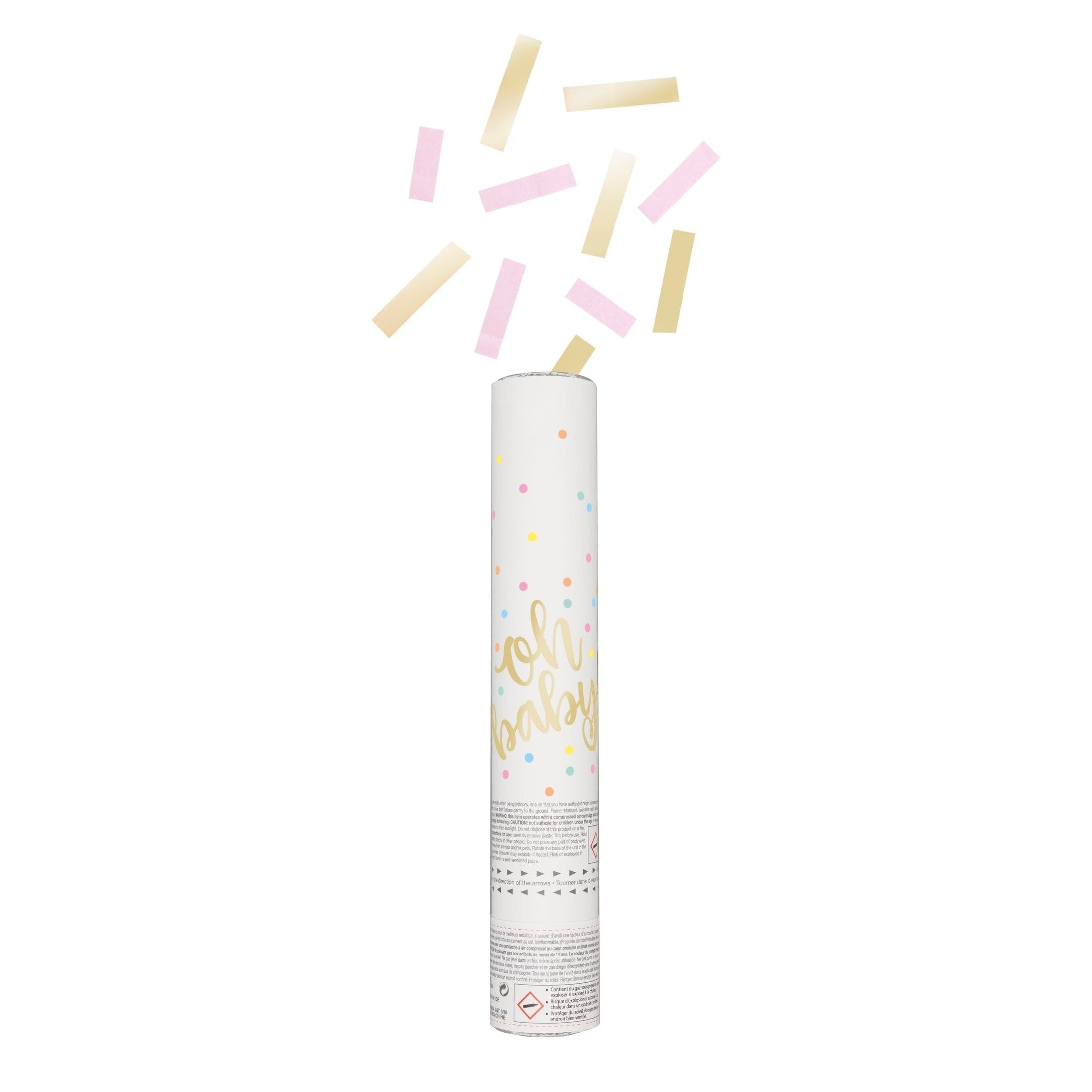 Make your gathering unforgettable with the Confetti Cannon - Pink and Gold, "Oh Baby". Order yours today and watch your celebrations come alive!