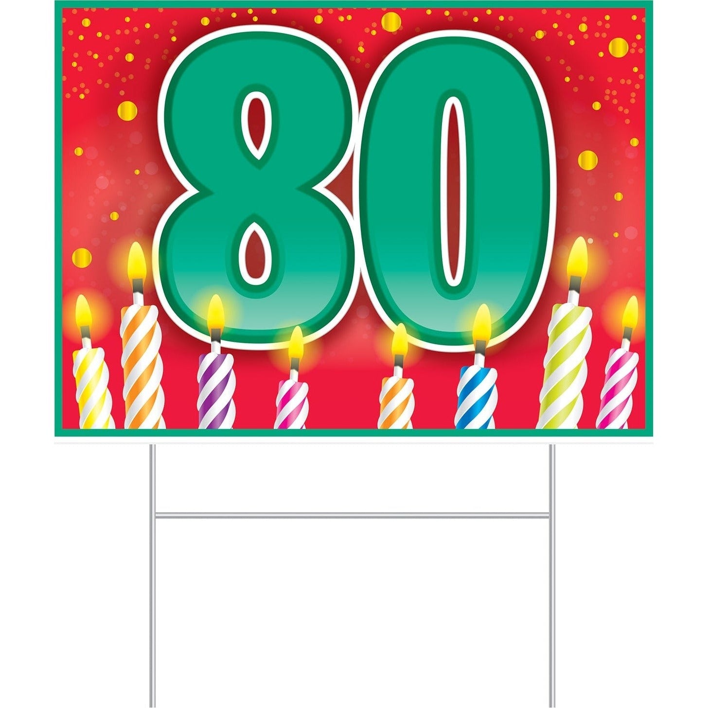 Celebrate a milestone birthday with our vibrant Plastic 80 Birthday Yard Sign, designed to make your special day truly unforgettable! This eye-catching sign is perfect for outdoor celebrations, helping to announce the big occasion to family and friends.