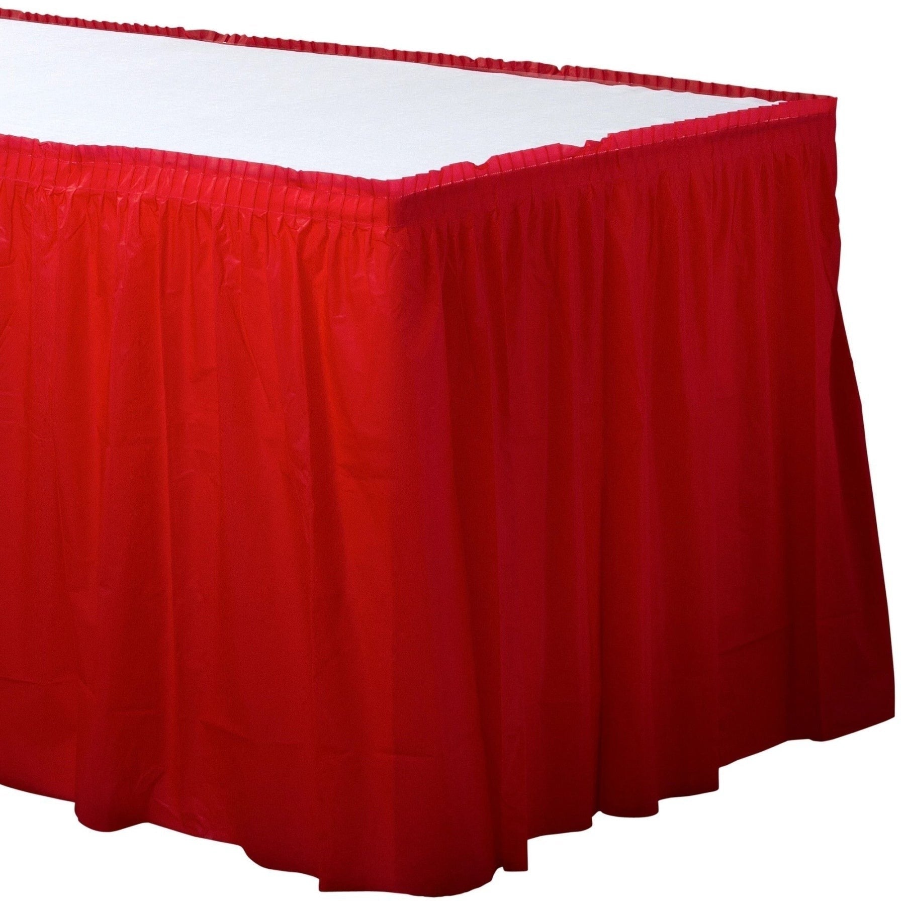The Table Skirt - Apple Red, Plastic, 21' x 29" is not just about looks; it also offers practicality. Its lightweight design makes it easy to transport and set up, while the vivid color enhances your decoration theme effortlessly. Create a festive backdrop and impress your guests with a beautiful presentation that reflects your style.