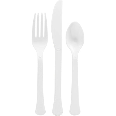 Cutlery Assortment - Frosty White, Reusable Plastic, 24 Count