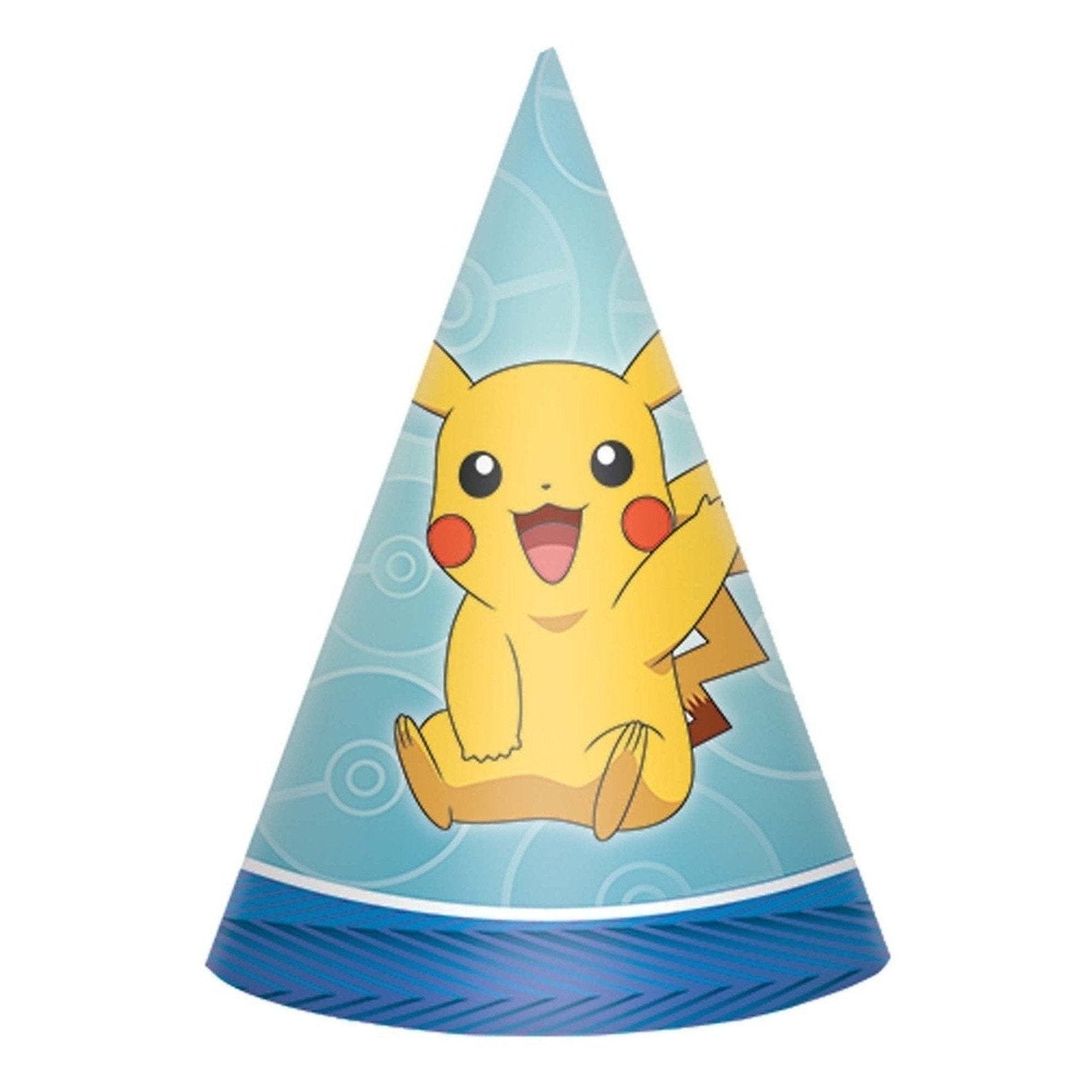Introducing the delightful Hat - Cone, Pokemon™, Paper, the perfect accessory for any Pokemon-themed celebration! Each package includes 8 vibrant cone hats that are sure to bring a smile to every child's face. Measuring 6 inches tall, these charming hats are designed to be both fun and functional, making them an excellent addition to parties, gatherings, or even casual playdates.