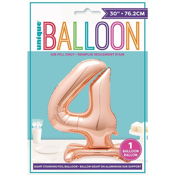 - Self-Inflating: The Rose Gold Number 4Shaped Standing Foil Balloon 30" arrives uninflated and includes a convenient plastic straw for easy inflation. Simply inflate, and watch it self-seal.