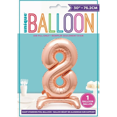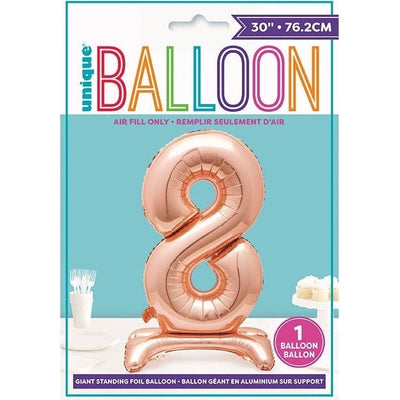 Balloon - Foil, Rose Gold, Number 8 Shaped, Standing, 30"