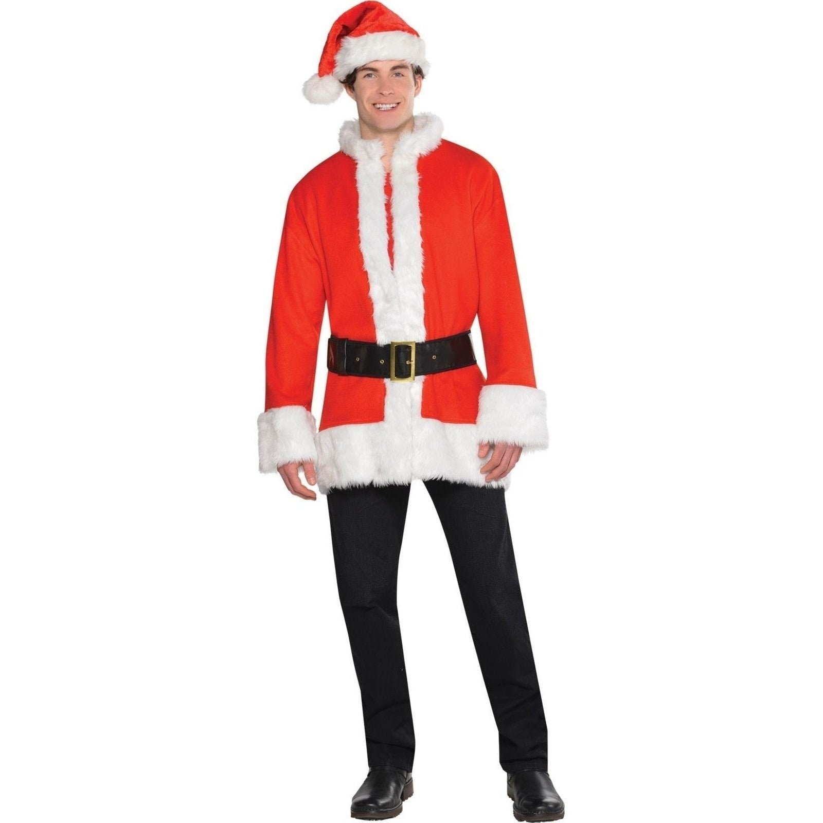 • Red fleece jacket with faux fur cuffs and trim;Leatherette belt and gold buckle;Adult Standard