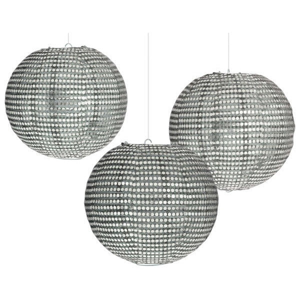 Illuminate your celebrations with our stunning Sequin Lanterns Silver. These eye-catching lanterns add a touch of glamour and elegance to any event, making them the perfect decorative accent for parties, weddings, or festive gatherings. Each package contains three beautifully crafted lanterns, each measuring 9 1/2 inches, designed to catch and reflect light, creating a mesmerizing ambiance.