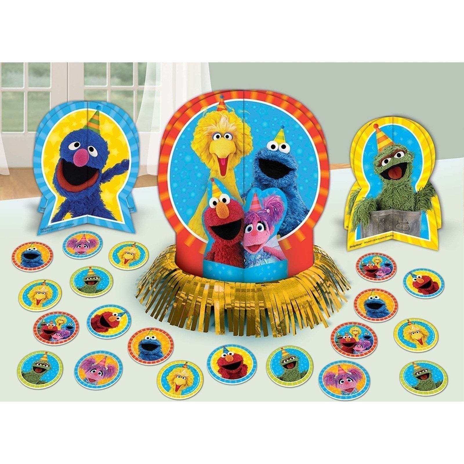 - 2 3-D Paper Centerpieces - Each measuring 7 inches, these vibrant centers feature beloved Sesame Street characters.