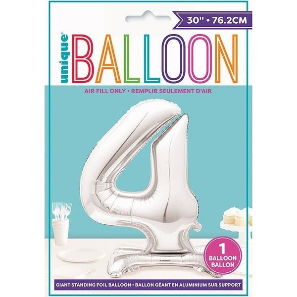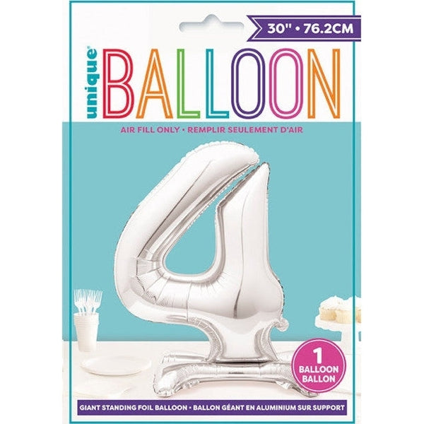 Versatile for any occasion, it seamlessly fits various themes. Don’t miss out on this eye-catching decoration—order your Silver Number 4 Shaped Standing Foil Balloon today and make your celebration truly unforgettable!