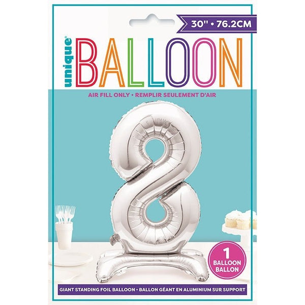 Elevate your celebrations with our Balloon - Foil, Silver, Number 8 Shaped, Standing, 30". This stunning metallic balloon serves as the perfect centerpiece for any special event, whether it be a birthday party or anniversary. Its impressive size and striking number 8 design create a vibrant focal point that will surely captivate your guests.