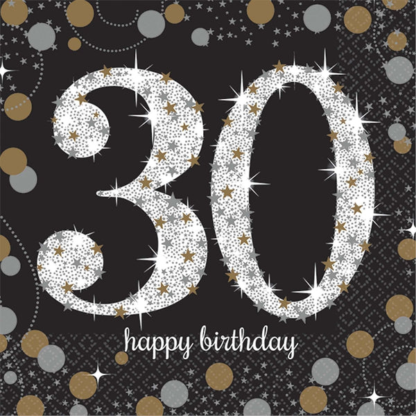 Celebrate your milestone with our Sparkling Celebration 30th Birthday Beverage Napkins, designed to elevate your birthday party! Each package contains 16 premium 5" x 5" napkins that blend elegance with function.