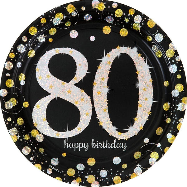 Celebrate a milestone with the Sparkling Celebration 80th Birthday Round Prismatic Plates, 9", the perfect addition to your party decor! These stunning plates are designed to elevate your birthday celebration, making it as memorable as the guest of honor. Crafted with a beautiful prismatic finish, each plate reflects light and color, adding a dazzling touch to any table setting.