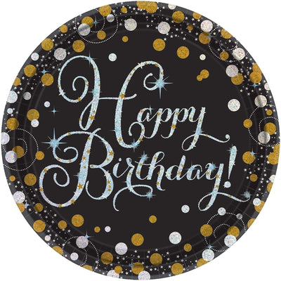 Sparkling Celebration Round Prismatic Plates, 7", Happy Birthday