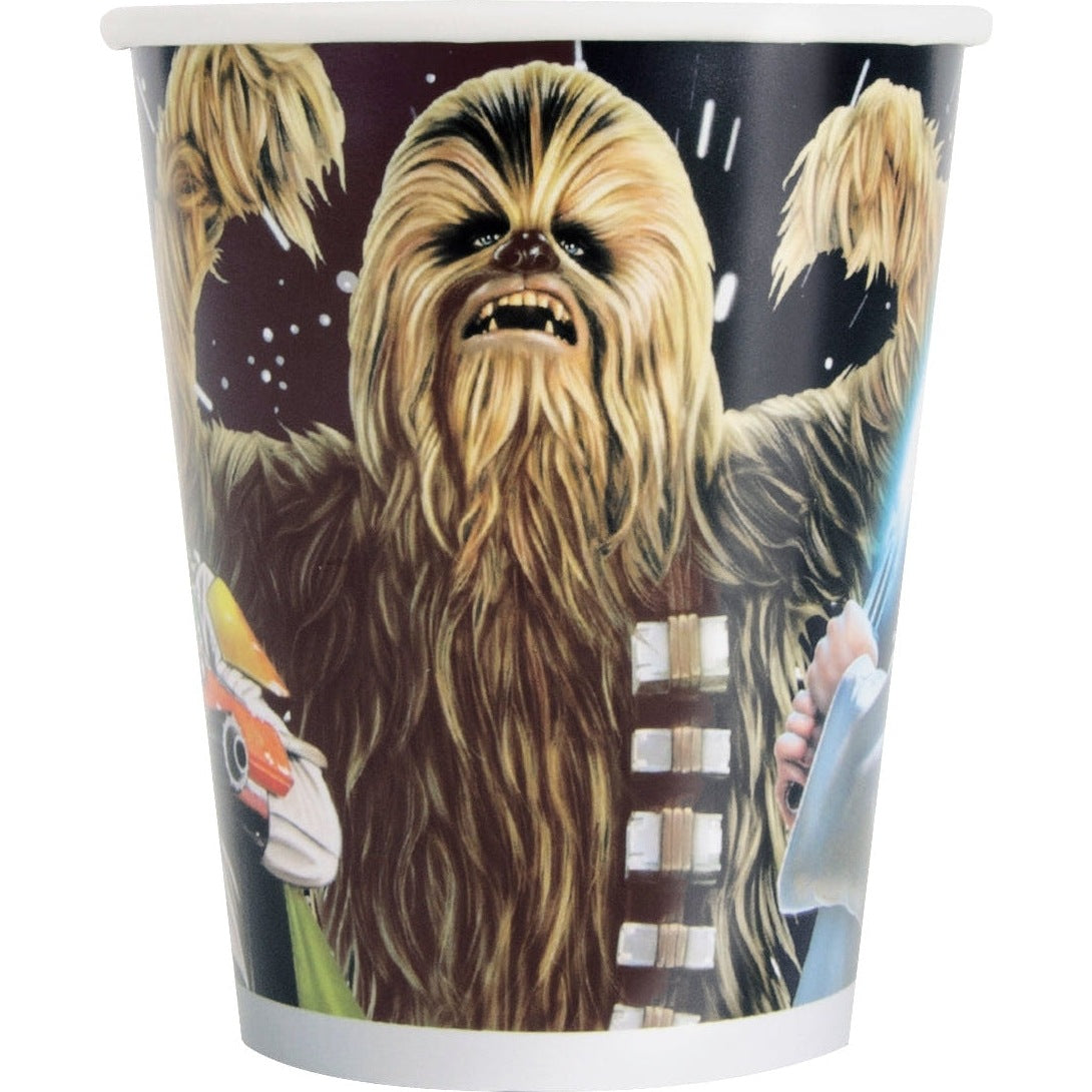Introducing the Cups - Paper, Star Wars Classic, 9oz., 8 Count, the ultimate addition to your Star Wars-themed event! These vibrant paper cups are adorned with iconic characters, perfect for fans of all ages.