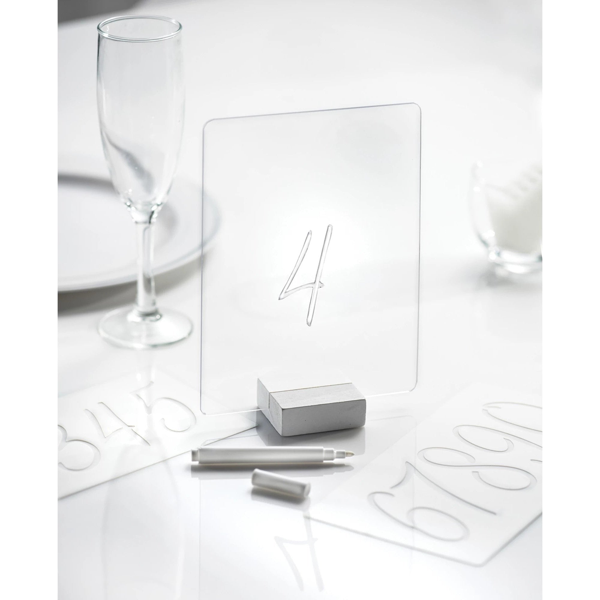 Introducing the Table Sign with Stencils, the perfect solution for all your event and display needs! This comprehensive package includes eight high-quality acrylic tiles, each measuring 7" x 5 1/2", designed to enhance your tablescape effortlessly. Whether you're hosting a wedding, a corporate event, or a casual gathering, these versatile signs will make your space stand out.