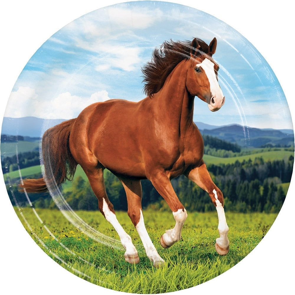 Experience the beauty of nature with our Plates - Wild Horse, Paper. Perfect for any occasion, these stunning paper plates add elegance and a wild spirit to your table setting. Each package contains 8 beautifully designed plates featuring a majestic wild horse motif.