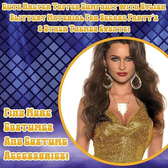 - Included: Halter-top bell-bottom jumpsuit. All other props and accessories are sold separately.
